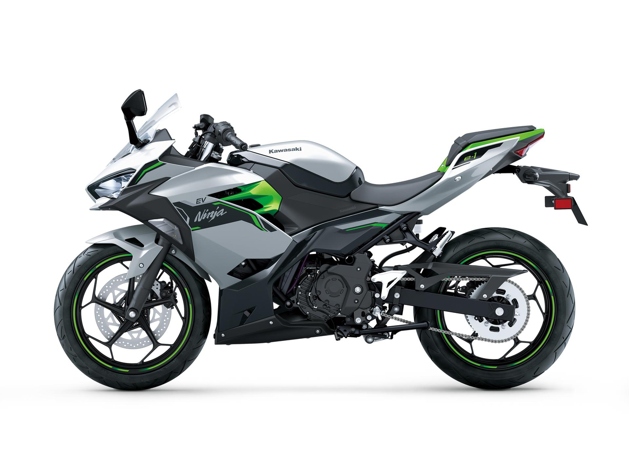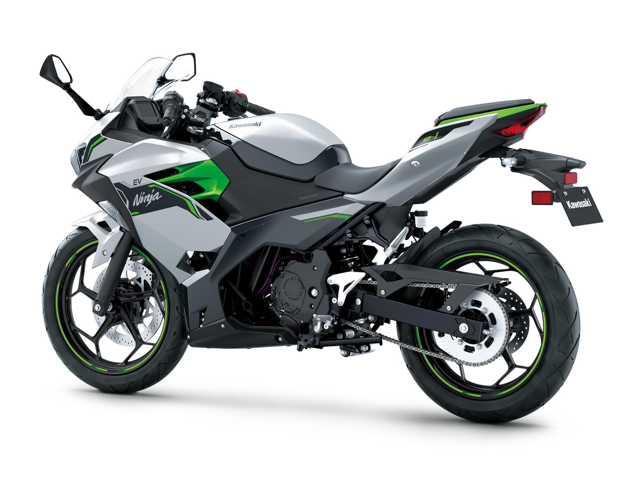 Ninja- ja Z-sarjojen houkuttelevaa muotoilua täydentävät hopean- ja mattavihreän sävyt antavat Kawasakin sähkömalleille raikkaan ja futuristisen ilmeen.