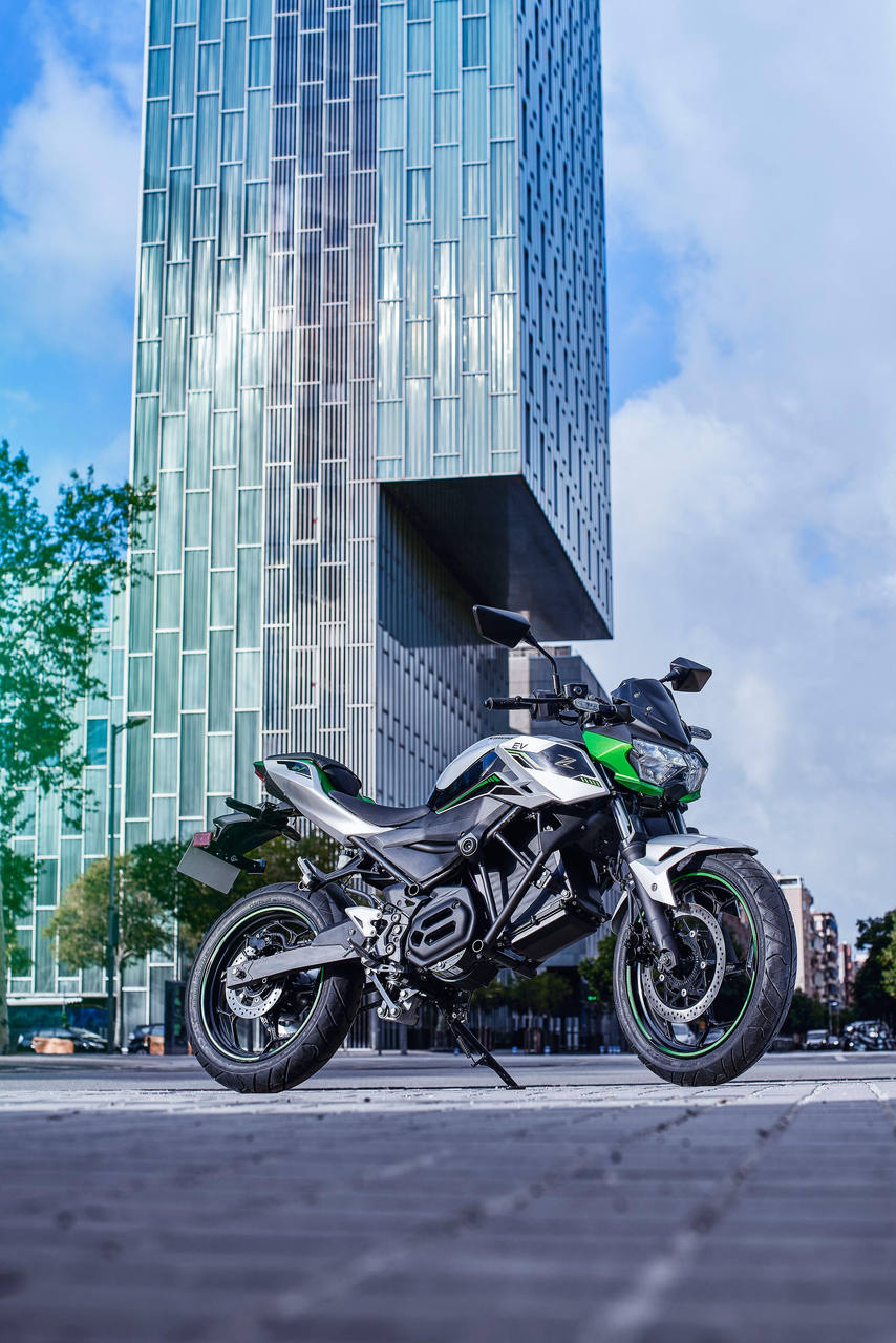 Kawasaki tuo ensimmäiset tieliikennekäyttöön hyväksytyt sähkömoottoripyörät markkinoille. Kompakti harjaton sähkömoottori tarjoaa vahvan kiihtyvyyden ja matalan kierrosluvun vasteen. Valittavat tehotilat, e-Boost ja Walk Mode tekevät ajosta nautittavaa. Moottori on myös hiljainen ja päästötön.