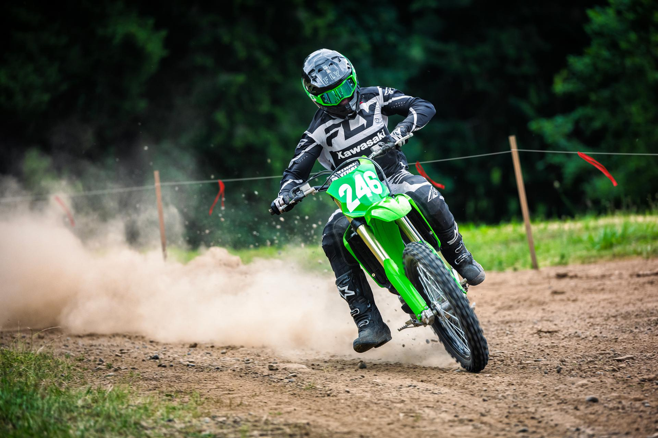 KX250:n moottorin huipputehon taustalla olevat peruselementit – sormivivulla toimiva venttiilikoneisto, pystysuuntainen ilmanotto ja kaksoissuuttimet – on täydennetty uudistetulla ilmanotto- ja pakokaasujärjestelyllä sekä yksittäisellä tasapainoakselilla, muodostaen entistä vahvemman ja hallittavamman kokonaisuuden kilpailumenestystä silmällä pitäen.