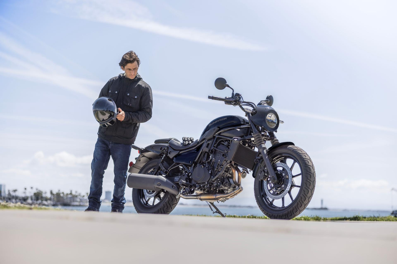 A modern reinterpretation of the long and low style of the original Eliminator is complemented by a versatility that lends itself to any lifestyle. Horizontal lines that draw the eye from front to rear, the low seat, and low, flat handlebar hint at the new Eliminator’s active riding potential and a light-footed maneuverability, as if to be able to glide lightly over the ground.