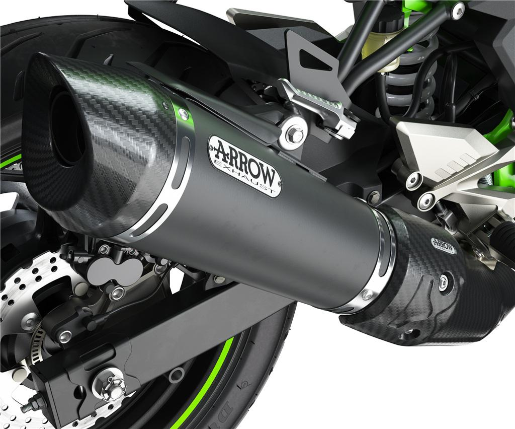 Fully compliant with Euro 5 emissions standards, the exhaust system is homologated (WVTA) and ECE-type approved in collaboration with Kawasaki Motors Europe and Arrow Special Parts. A carbon fiber heat shield is included for added protection and a refined aesthetic.