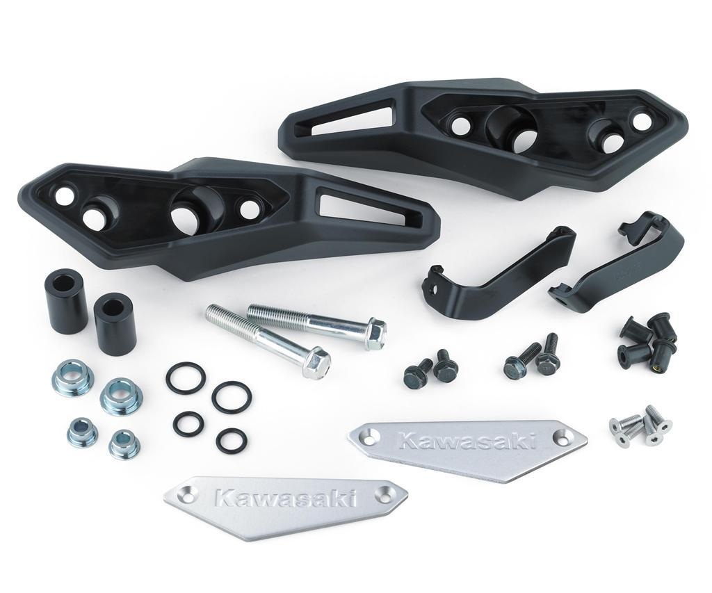• High-density black ABS plastic Frame Sliders feature the Kawasaki logo and are mounted with factory-designed metal brackets