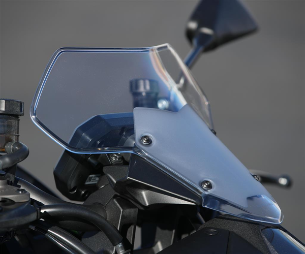 Clear meter cover raises airflow from the front cowl. About 5cm higher and 5cm wider with spoiler edge for improved wind protection and comfort.